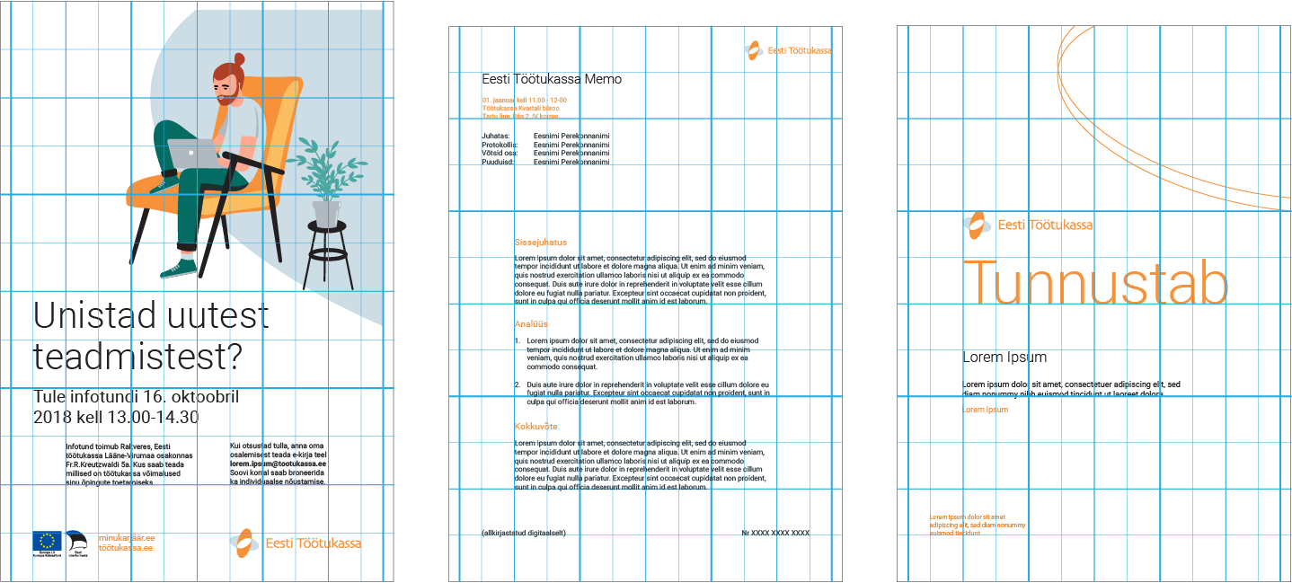 Soovituslikult kasutatakse infokandjatel (töötukassa koduleht, trükised, reklaammaterjalid jm) läbivalt Roboto kirjatüüpi.