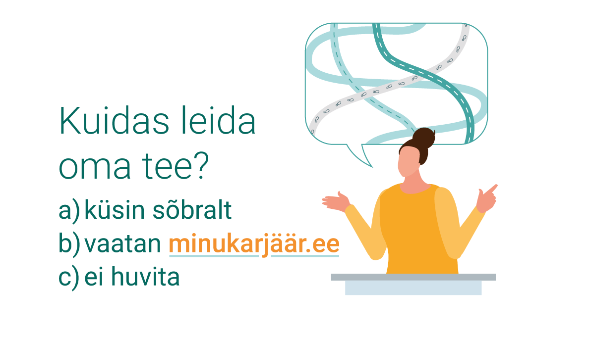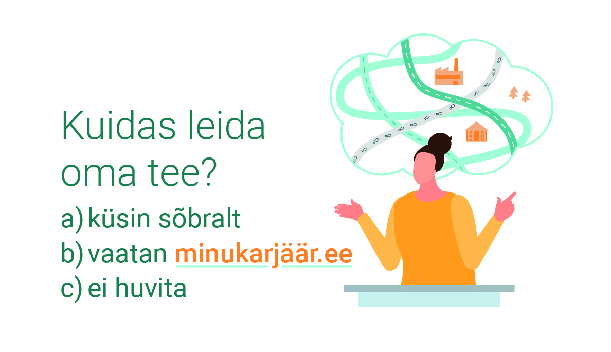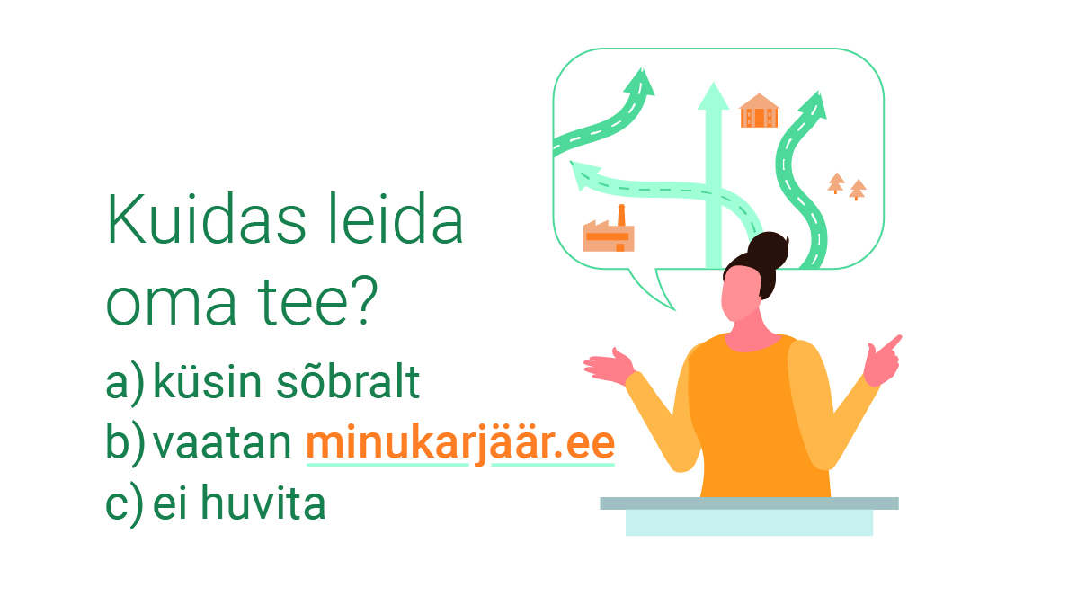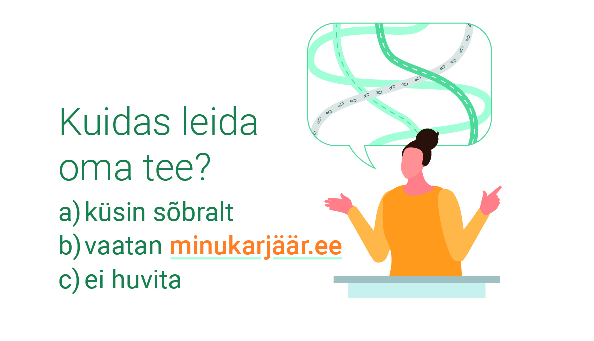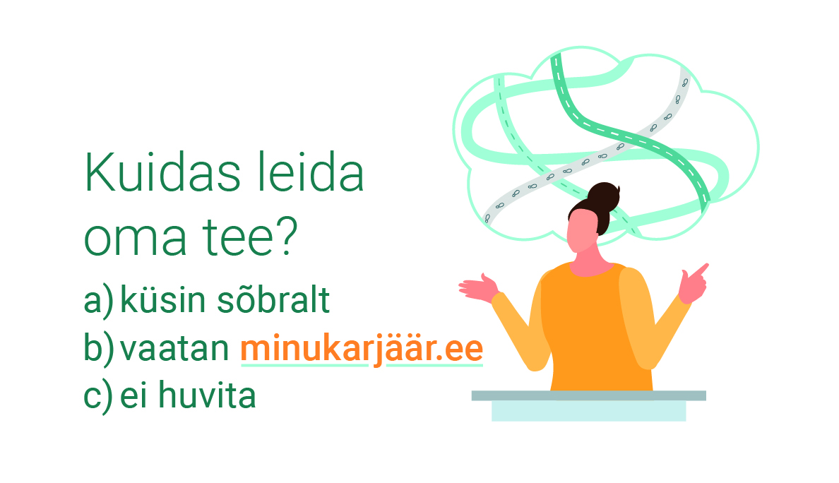 6 sammu_horisontaalne_2.jpg 6 sammu_vertikaalne_2.jpg Grupinõustamine.jpg Heategevuskuu.jpg Karjääri kujundamise oskused.jpg Karjääri kujundamise oskused_2.jpg Keskkonnakuu_rattaga tööle.jpg Koostöö.jpg Lülita mobiil välja ikoon.jpg Mitmekesisus.jpg Nõustamine kaartidega.jpg Nõustamine_taimega.jpg Oma_tee 1.jpg Oma_tee 2.jpg Oma_tee 3.jpg Oma_tee 4.jpg Oskuste arendamine.jpg Puhkus.jpg Recommi_soovitusindeks_Illustratsioon ENG.jpg Recommi_soovitusindeks_Illustratsioon EST.jpg Recommi_soovitusindeks_Tabel ENG.jpg Recommi_soovitusindeks_Tabel EST.jpg Sport.jpg TK_lapsed mängunurgas.jpg Tehnoloogiat_ilmestavad_AI.jpg Tehnoloogiat_ilmestavad_Automatiseerimine.jpg Tehnoloogiat_ilmestavad_Innovatsioon.jpg Tehnoloogiat_ilmestavad_Rohepööre.jpg Tehnoloogiat_ilmestavad_Taaskasutus.jpg Tehnoloogiat_ilmestavad_Tuule- ja päikeseenergia.jpg Tehnoloogiat_ilmestavad_Tööstusmasinad.jpg Tehnoloogiat_ilmestavad_Vananev elanikkond.jpg Tehnoloogiat_ilmestavad_elektriautod.jpg Töö ja puhkuse tasakaal.jpg Tööõnn.jpg Universaalsed_Edaspidised tegevusd karjääriplaan.jpg Universaalsed_Eesmärgi poole liikumine.jpg Universaalsed_Otsustamine.jpg Universaalsed_Planeerimine.jpg Universaalsed_Valikute situatsioon.jpg Universaalsed_taustaga_Edaspidised tegevusd karjääriplaan.jpg Universaalsed_taustaga_Eesmärgi poole liikumine.jpg Universaalsed_taustaga_Otsustamine.jpg Universaalsed_taustaga_Planeerimine.jpg Universaalsed_taustaga_Valikute situatsioon.jpg Vaimne tervis.jpg elukestev õpe.jpg pressikonverents.jpg õpilased.jpg